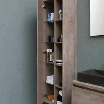 2. Använd smart förvaring: Med ett snedtak blir det extra viktigt att utnyttja varje tum av utrymme. Genom att integrera smart förvaring i väggar eller hyllor kan du optimera utrymmet och hålla badrummet organiserat.